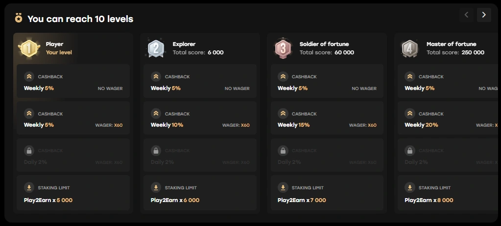 Fairspin’s loyalty program rewards consistent play with cashback and rakeback bonuses. The more you play, the more rewards you accumulate, creating a mutually beneficial relationship between the player and the casino. The loyalty program also ties into the Play-to-Earn and Hold-to-Earn models, giving players more ways to earn and use TFS tokens through their regular gameplay.