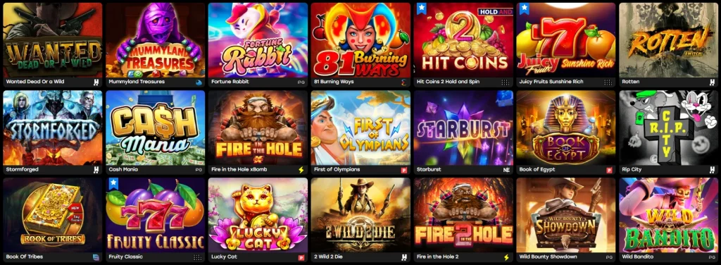 - Wanted Dead or a Wild by Hacksaw Gaming: This slot game boasts a Western theme with high volatility and offers players the chance to win big with its unique features, including sticky wilds and free spin rounds.